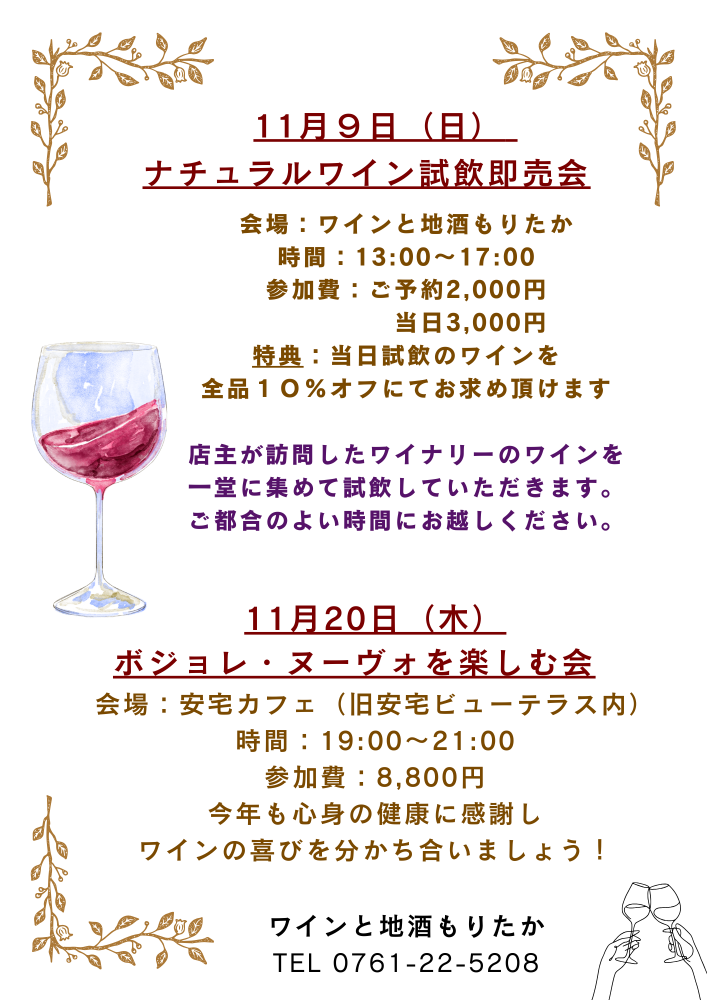 ”ボージョレ・ヌーヴォを楽しむ会”をATAKA CAFEにて開催いたします。